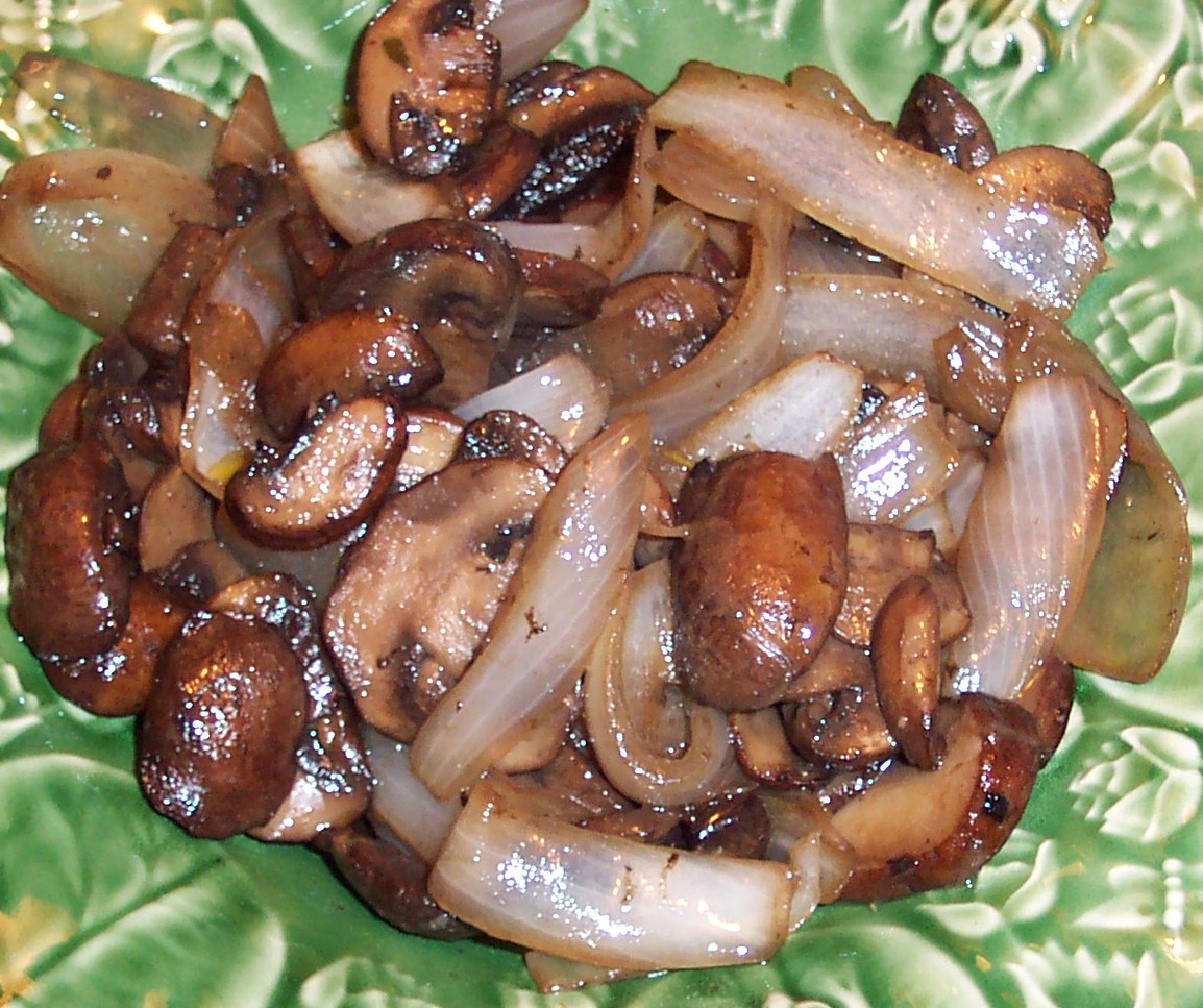 1?2 lb sliced mushrooms (I use crimini but white work as well) 1 medium onion, sliced into wedges 2 tablespoons butter 1 tablespoon olive oil 1 teaspoon Worcestershire sauce 1?4 teaspoon garlic salt