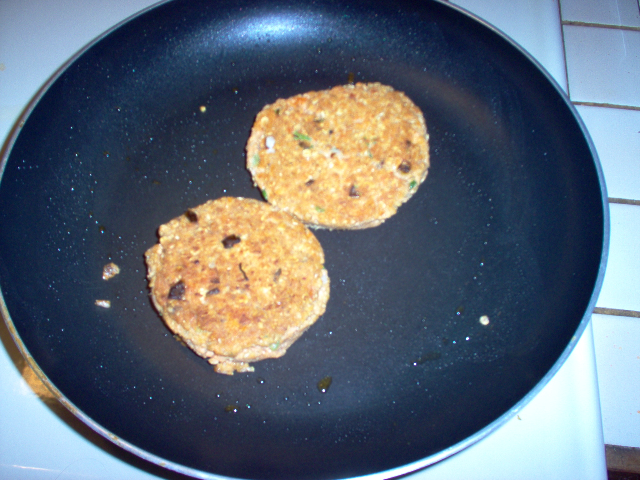 Combined all ingredients except margarine; mix well. Shape to form oval patties about 1/2 inch thick. Pan fry the patties in margarine over medium heat for 3-4 minutes on each side or until golden brown and heated through. Serve hot.