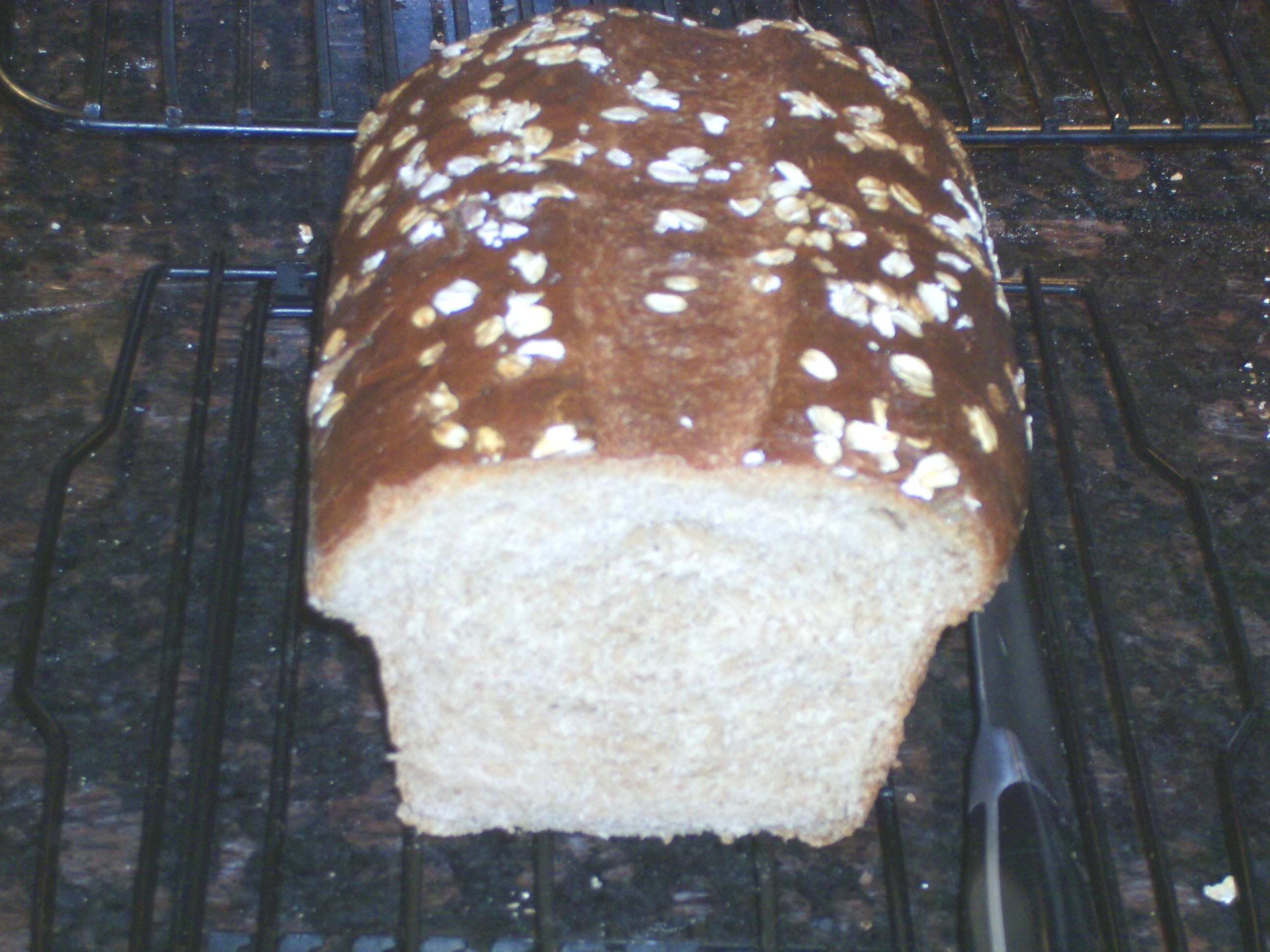 3?4 cup water 1?2 cup buttermilk (or 1/2 c milk with 1/2 Tablespoon lemon juice) 1?8 cup oil 1?4 cup honey 1?2 cup old fashioned oats 1 1?2 cups white flour 1 1?2 cups wheat flour 1 1?2 teaspoons salt 1?4 teaspoon baking soda 1 tablespoon yeast