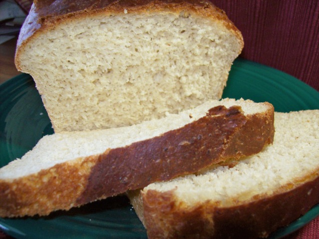 Put ingredient in bread maker in the order listed above. Set to dough cycle. Check to see if a good ball is forming; if needed add a teaspoon of water or flour at a time to get a good dough ball. At the end of the dough cycle, form a loaf and put in lightly sprayed bread pan. Cover, and let raise for about 45 minutes to an hour. Bake at 350 for 45-50 minutes, depending on your oven. After removing from oven, lightly spread melted butter on the top crust with pastry brush (optional; gives it a nice look and flavor).