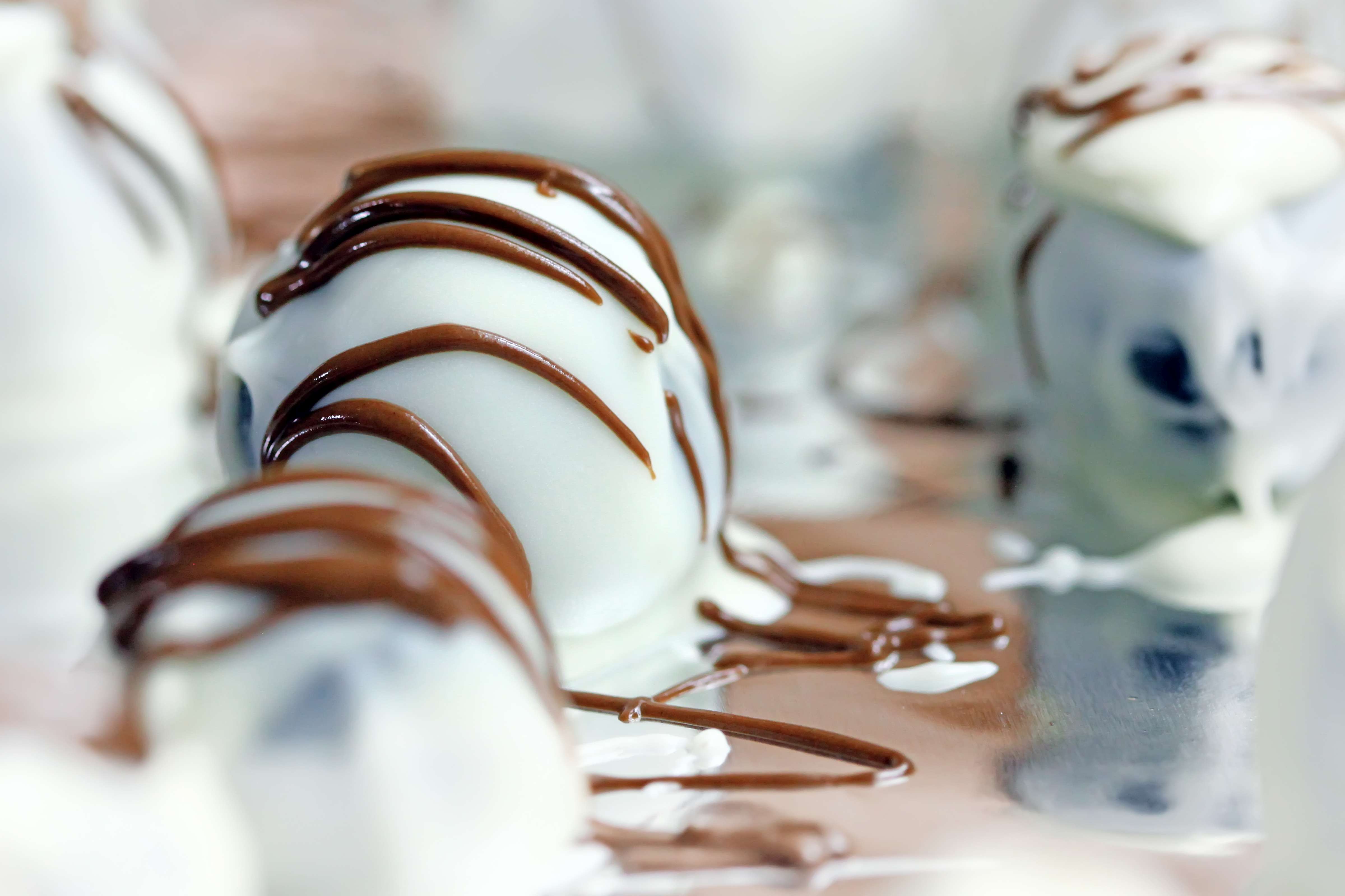 1 lb Oreo cookies (3 sleeves) 8 ounces cream cheese, room temperature 1?2 teaspoon vanilla extract (using different extracts allows for subtle flavour changes...I've used mint extract, upped to 1 tsp) (optional) 1 lb milk chocolate 1?2 lb white chocolate