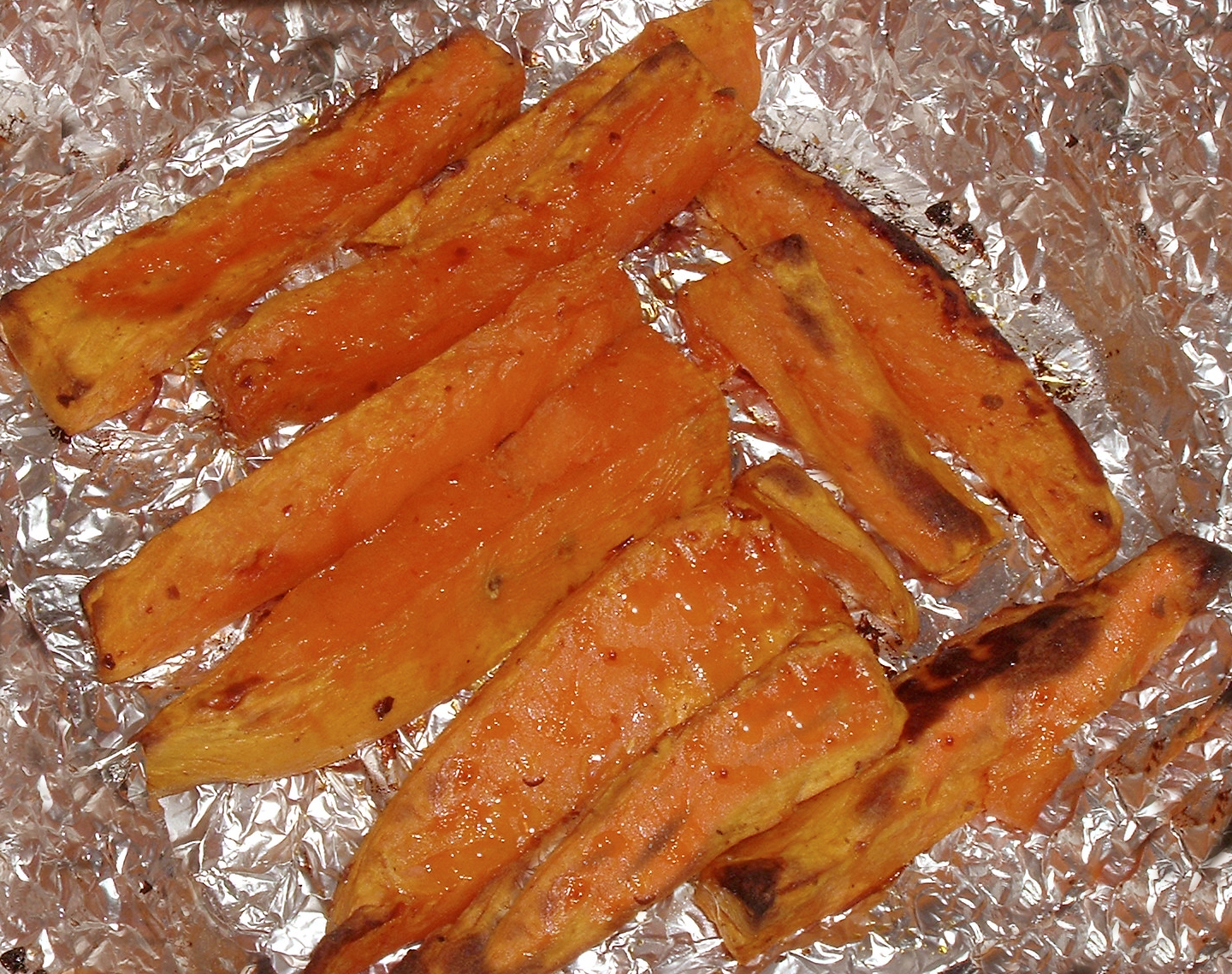 3 sweet potatoes 1 tablespoon olive oil 1 tablespoon brown sugar 1?2 teaspoon chili powder 1?2 teaspoon salt 1?8 teaspoon cayenne pepper