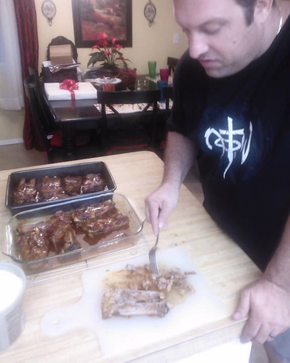 3 -4 lbs st. louis style ribs 1 -2 teaspoon garlic salt 1 1?2 cups water 1?3 cup apple cider vinegar 1?3 cup Worcestershire sauce 1 cup ketchup 1?4 cup sugar 1?4 cup maple syrup 1 tablespoon Frank's red hot sauce (adjust for desired level or heat) 1 teaspoon salt 1 teaspoon chili powder 1?2 teaspoon onion powder 1 teaspoon dry mustard 1 -2 teaspoon celery seed (be careful, too much can overpower the flavor) 1 teaspoon paprika 1?2 teaspoon black pepper